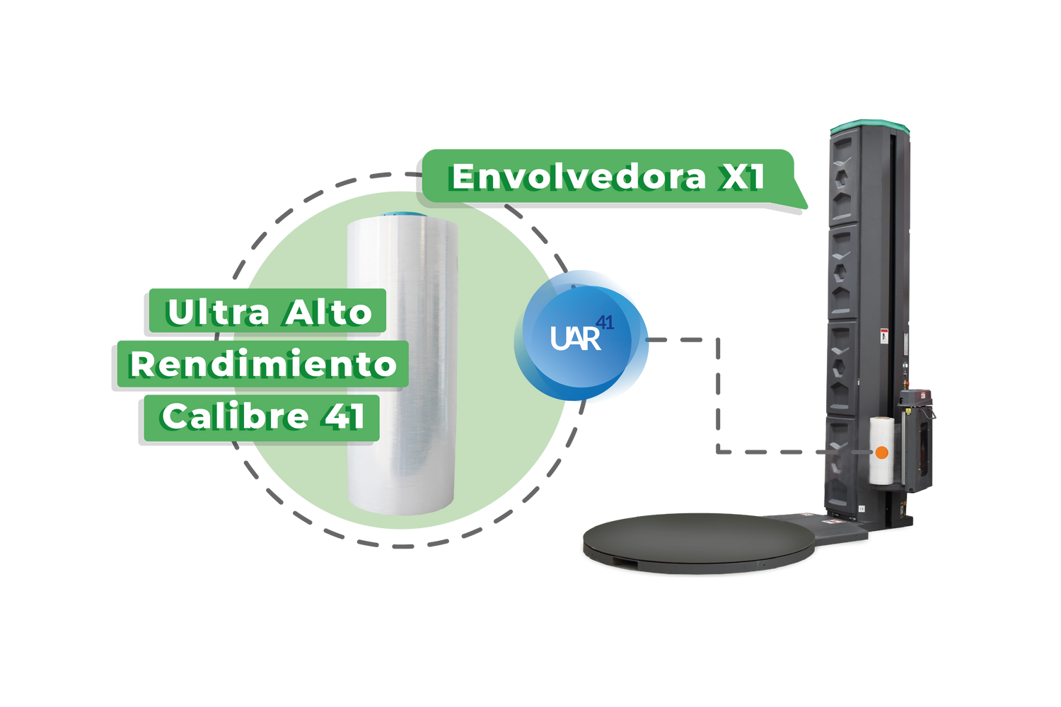 Con la nueva Película Stretch Automática de Ultra Alto Rendimiento calibre 41 Ga puedes envolver una tarima de forma segura utilizando menos de 100 gramos.