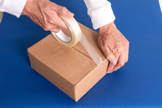 Nuestra cinta con filamento es fabricada con película PET y se encuentra reforzada con fibra de vidrio, lo cual logra una excelente resistencia a la tensión y al corte.