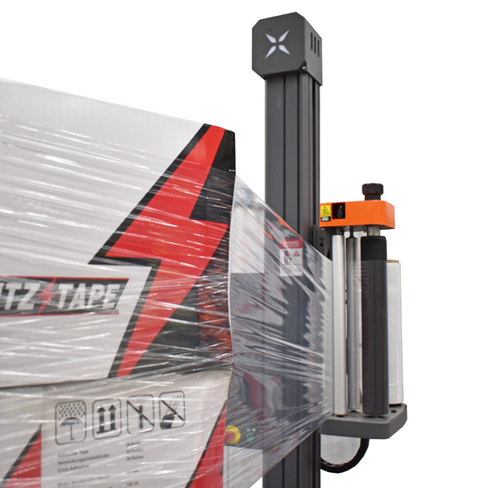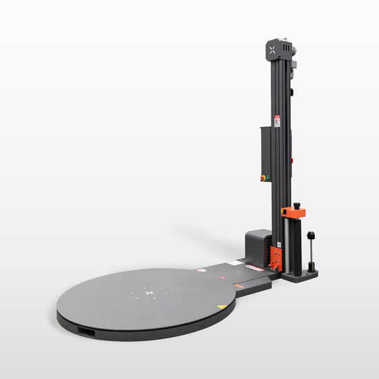 La máquina envolvedora X0 es el equipo de tornamesa más completo y económico del mercado para operaciones de bajo volumen.